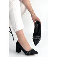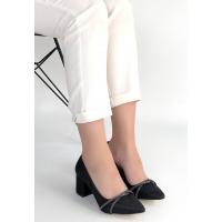 Rewin Siyah Simli Cilt Topuklu Ayakkabı