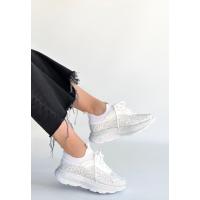 Rimay Beyaz Cilt Boncuk İşlemeli Spor Ayakkabı