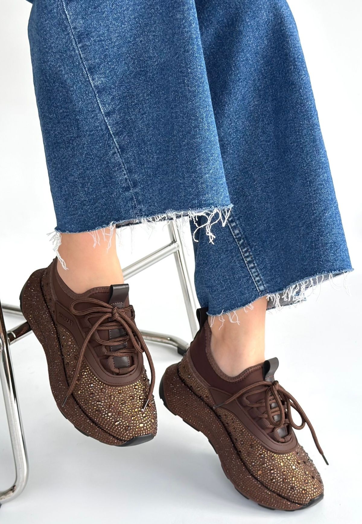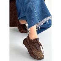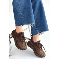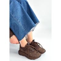 Rimay Kahverengi Cilt Boncuk İşlemeli Spor Ayakkabı