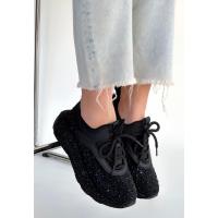Rimay Siyah Cilt Boncuk İşlemeli Spor Ayakkabı