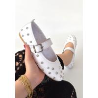 Ritta Beyaz Cilt Kemerli Babet Ayakkabı