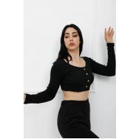 Düğmeli Mini Crop Bady Siyah - P-020494