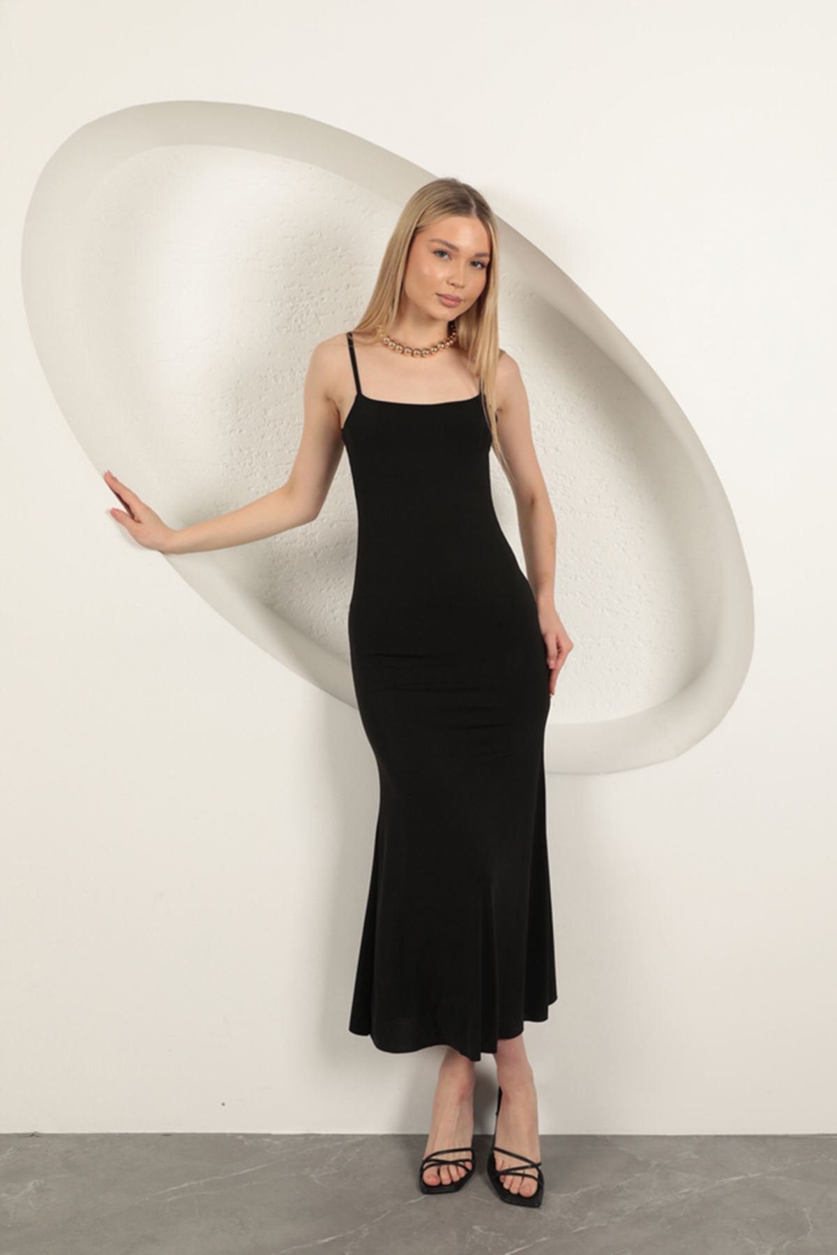Sandy Kumaş İp Askılı Basic Elbise-Siyah