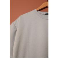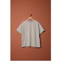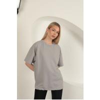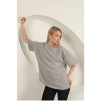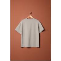 Sıfır Yaka Oversize İki İplik Tişört-Gri