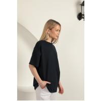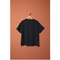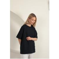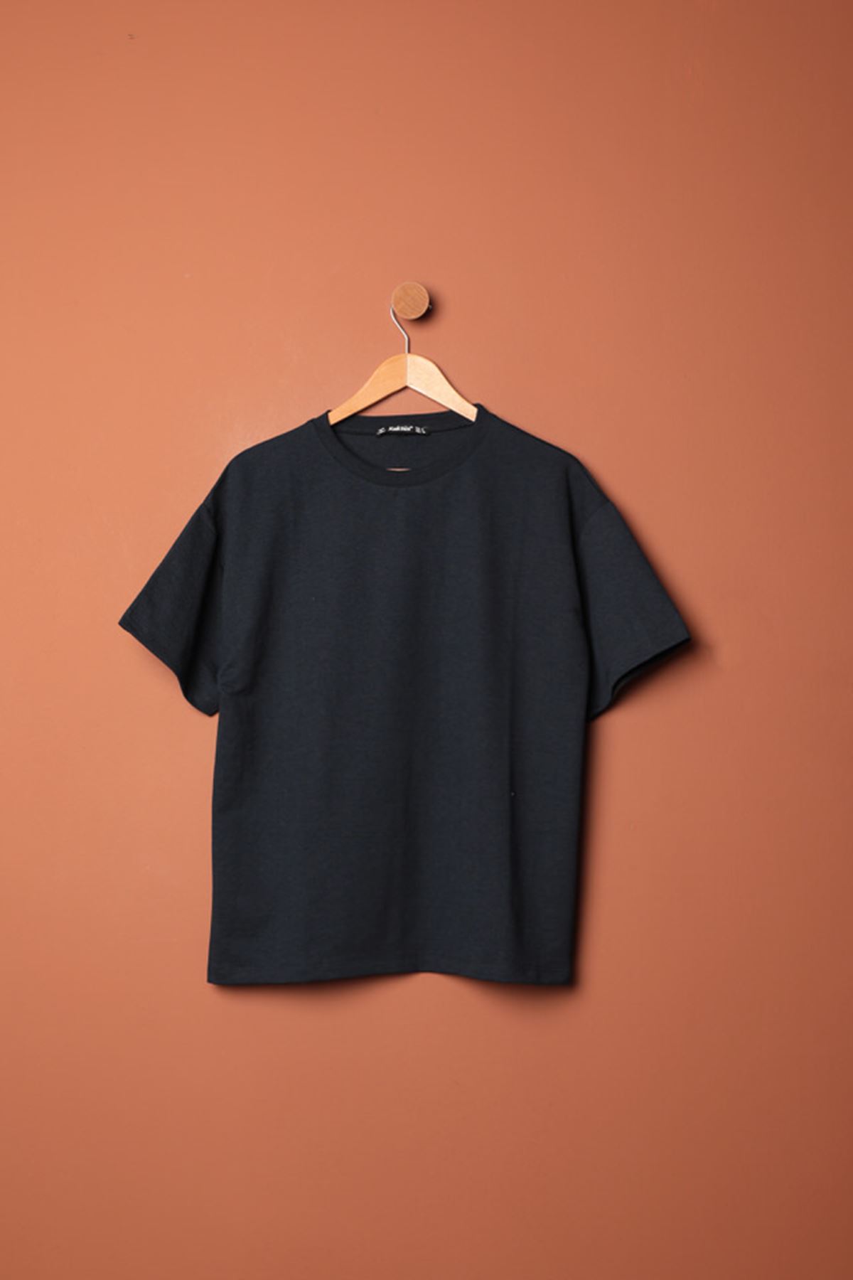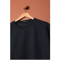 Sıfır Yaka Oversize İki İplik Tişört-Lacivert