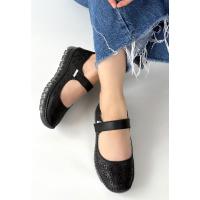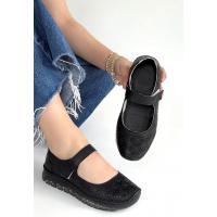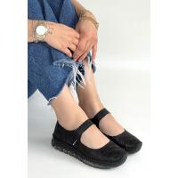Sina Siyah Deri Cırt Cırtlı Babet Ayakkabı