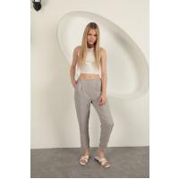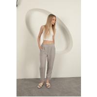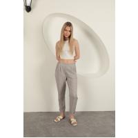 Sofia Keten Duble Paça Kadın Pantolon-Gri