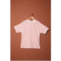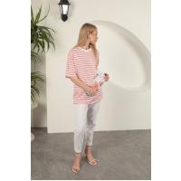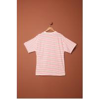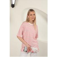 Süprem Kumaş Çizgili Sıfır Yaka Tişört-Fuşya