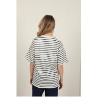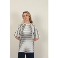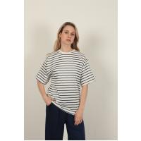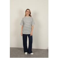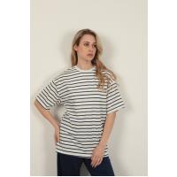 Süprem Kumaş Çizgili Sıfır Yaka Tişört-Lacivert