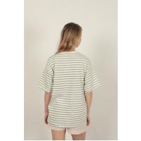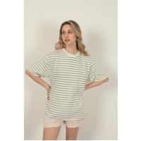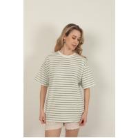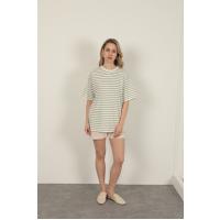 Süprem Kumaş Çizgili Sıfır Yaka Tişört-Yeşil
