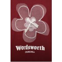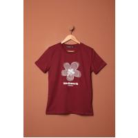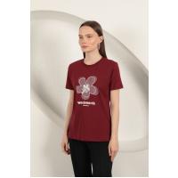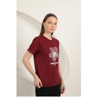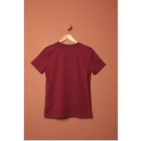 Süprem Kumaş Fiyonk Baskılı Tişört-Bordo