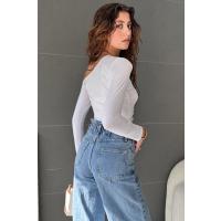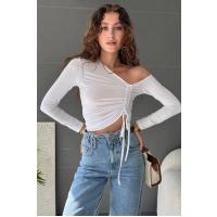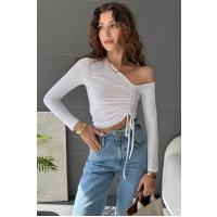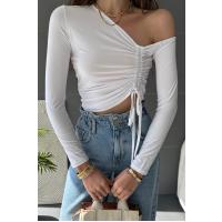 Tek Omuz Yanı Büzgü Detaylı Sandy Bluz