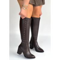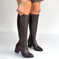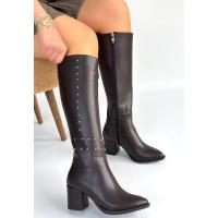 Tiyan Kahverengi Cilt Topuklu Çizme