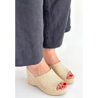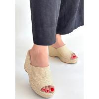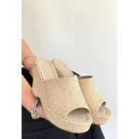 Tlay Bej Hasır Dokumalı Dolgu Topuk Terlik
