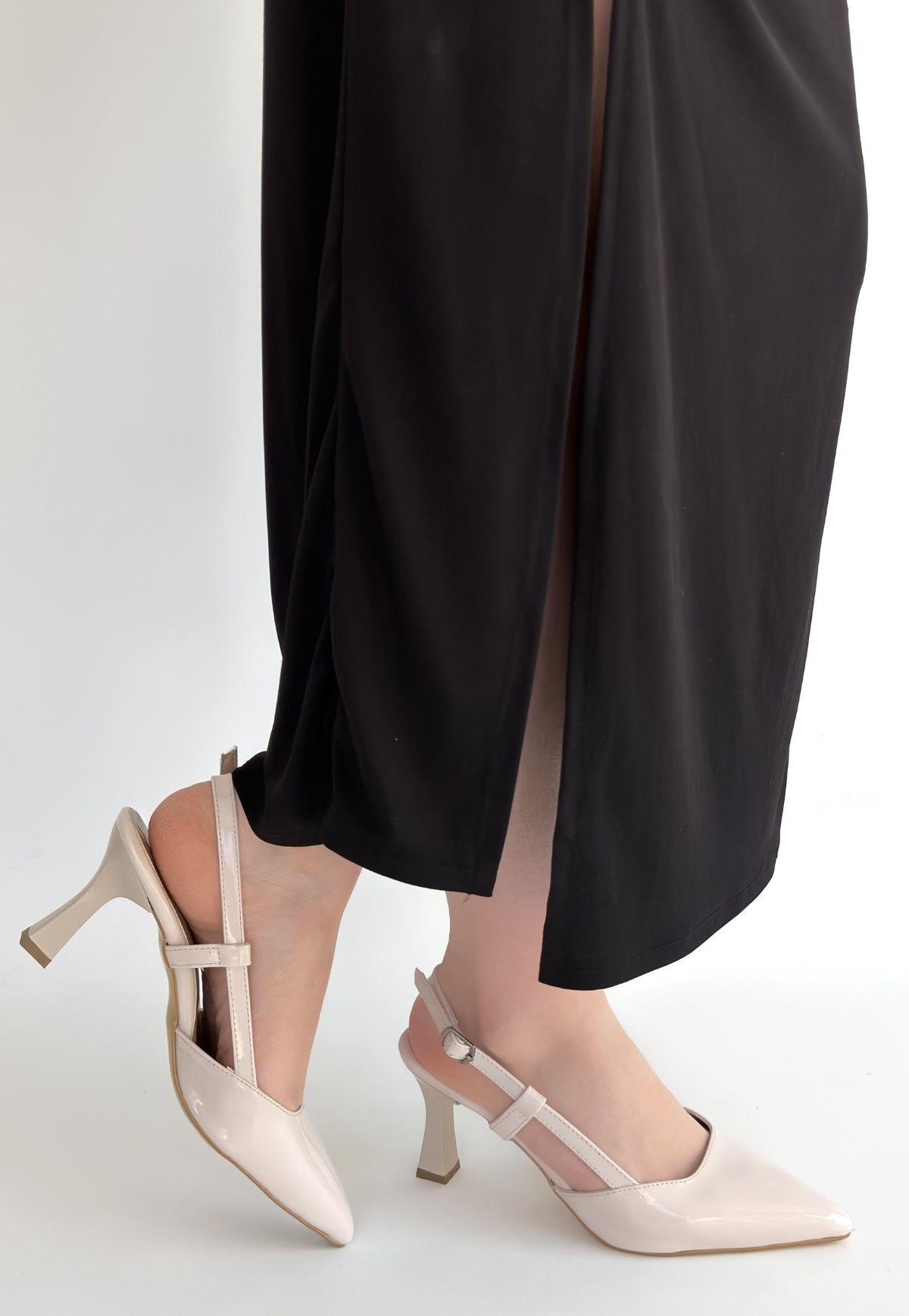 Toran Beyaz Rugan Siyah Süet Detaylı Topuklu Ayakkabı