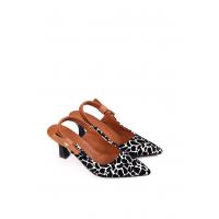 Toran Beyaz Rugan Siyah Süet Detaylı Topuklu Ayakkabı