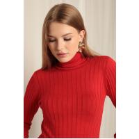 Triko Kumaş Balıkçı Yaka Kadın Kırmızı Bluz