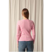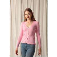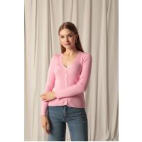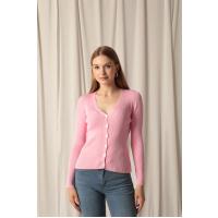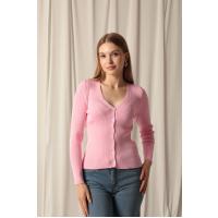 Triko Kumaş Düğmeli Kadın Pembe Hırka
