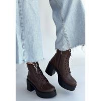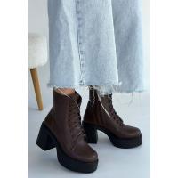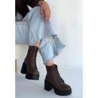 Tsan Kahverengi Cilt Bağcıklı Topuklu Bot