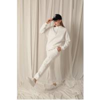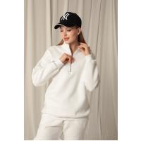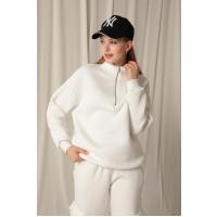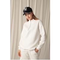 Üç İplik Dik Yaka Yarım Fermuarlı Kadın Ekru Sweat