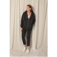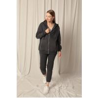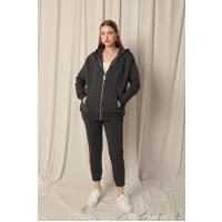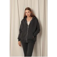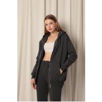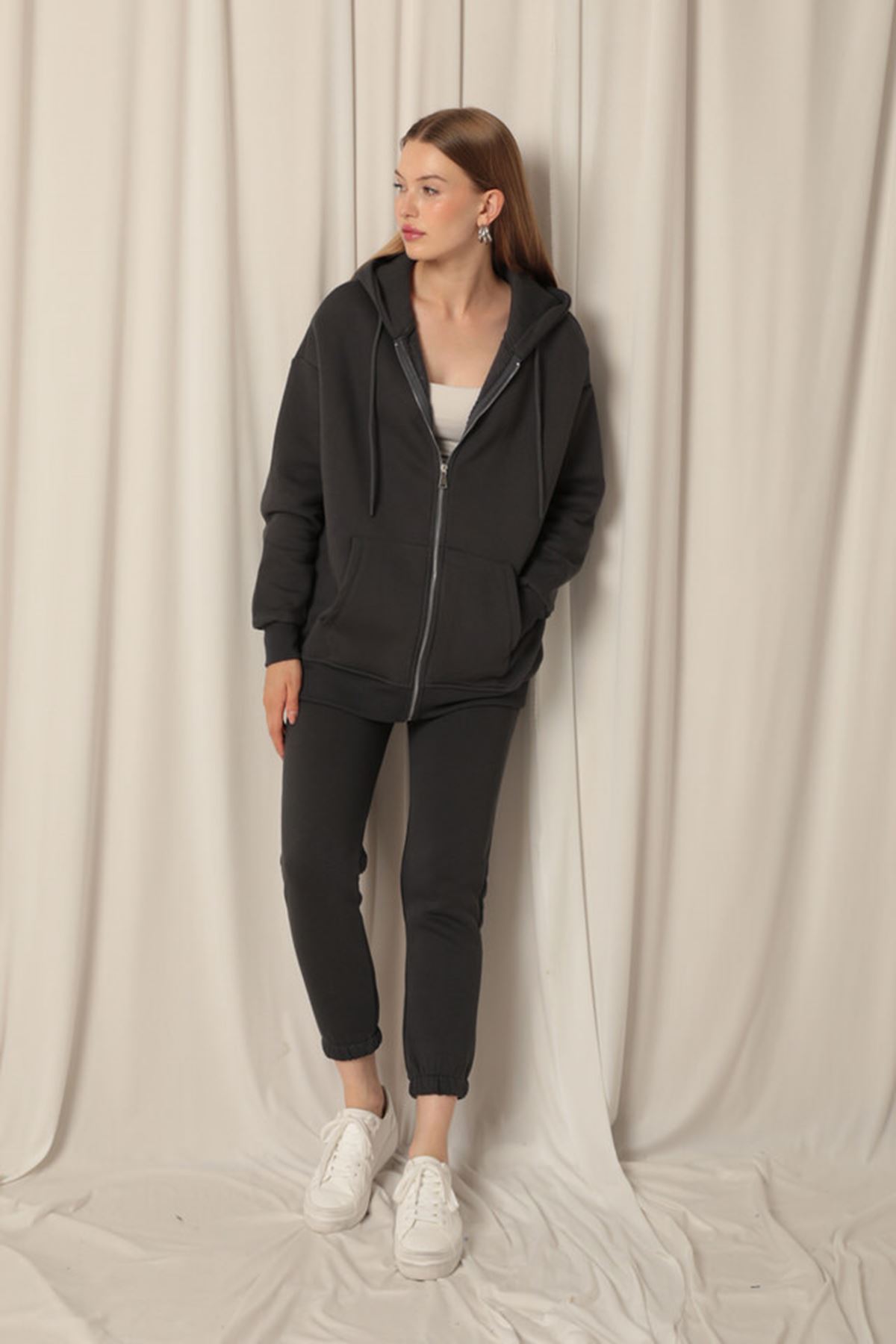 Üç İplik Kanguru Cep Kadın Fermuarlı Kapüşonlu Sweat-Antrasit