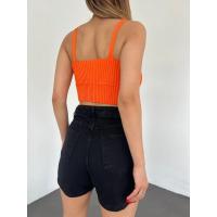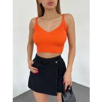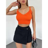 V Yaka Askılı Crop Triko Büstiyer Turuncu - DF2202