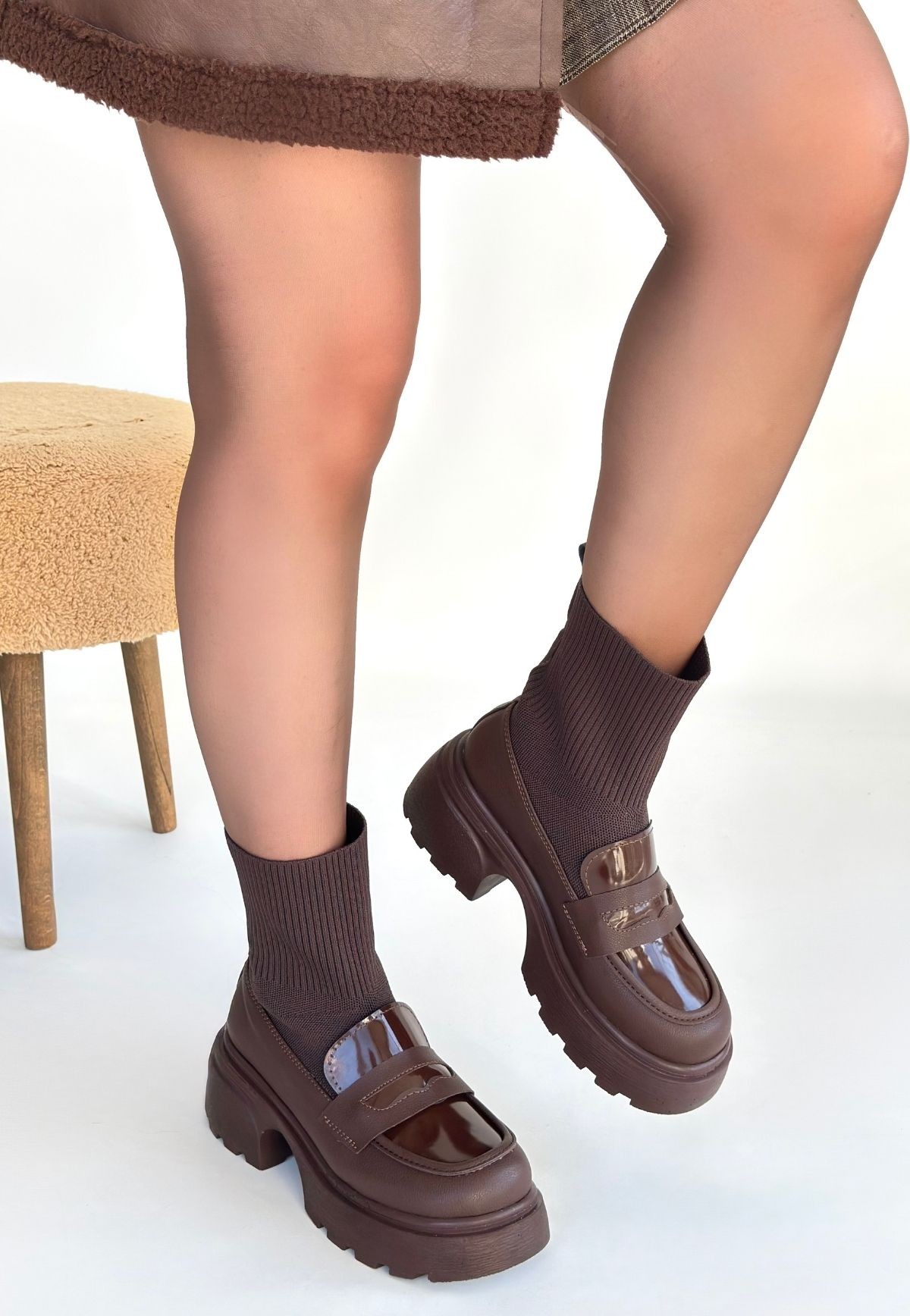 Wanye Kahverengi Cilt Cilt Streçli Bot