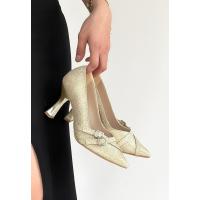 Wenda Gold Simli Cilt Topuklu Ayakkabı