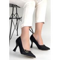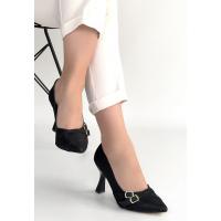 Wenda Siyah Simli Cilt Topuklu Ayakkabı