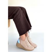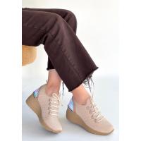 Weor Bej Triko Bağcıklı Spor Ayakkabı