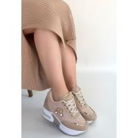 Wody Bej Cilt Simli Bağcıklı Spor Ayakkabı