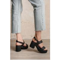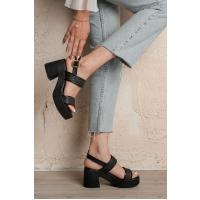 Wowi Siyah Cilt Baskılı Topuklu Sandalet