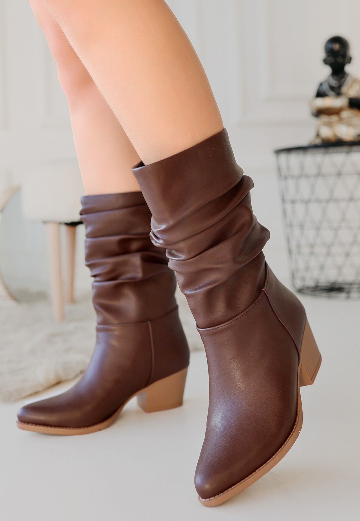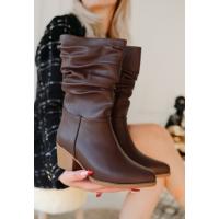 Yior Kahverengi Cilt Topuklu Bot