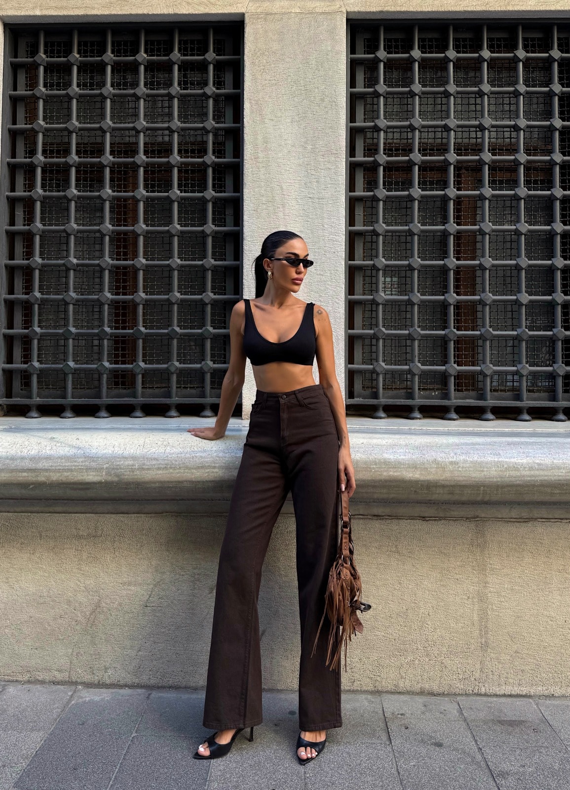 Yüksek Bel İspanyol Paça Denim Pantolon