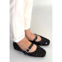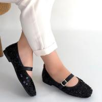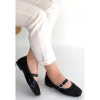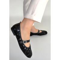 Zaty Siyah Süet Siyah Pullu Babet Ayakkabı